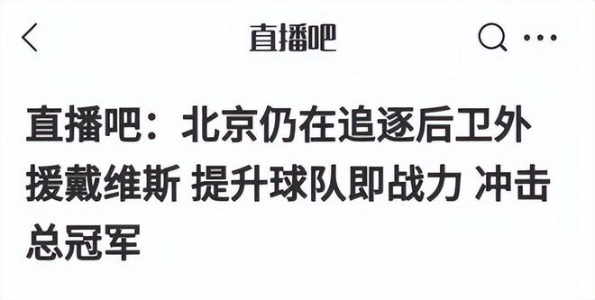 不过在北京男篮找了一圈后,并没有发现好的小外援,不得不再次将目标锁定为戴维斯。从直播吧透露的消息来看,北京男篮应该会和同曦男篮进一步沟通戴维斯的优先续约权的转让问题,尽最大努力和他完成签约。如果北京男篮真的能够签下戴维斯的话,冲击总冠军方面又会多一份保障;如果真的能够夺冠成功的话,那么高价签下戴维斯也就能够接受了。