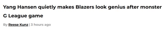 杨瀚森31分爆发扭转评价!波特兰媒体点赞:要继续持有这支股票