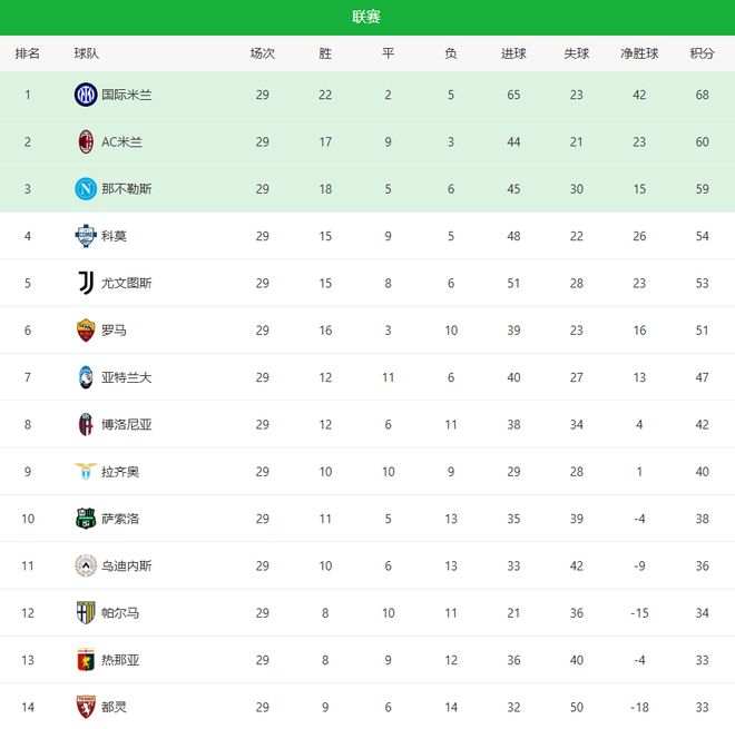 随着大黑马2-1罗马+AC米兰0-1爆冷!意甲最新积分榜:2-5名差7分