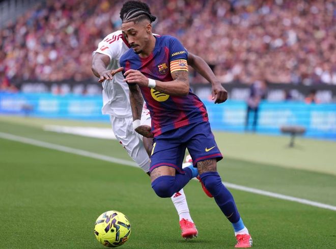下半场易边再战。第51分钟,巴萨再次进球!拉菲尼亚在禁区内切射门,皮球被挡了一下折射入网!拉菲尼亚完成帽子戏法!第60分钟,坎塞洛突入禁区左侧,扣过防守球员,低射破门!坎塞洛独造3球,状态太好了。补时阶段,索乌头球破门,扳回一球。最终,巴萨5-2击败塞维利亚。巴西前锋拉菲尼亚无疑是全场最佳,他打进3球。巴萨联赛豪取4连胜,积分榜领先身后的皇马4分!