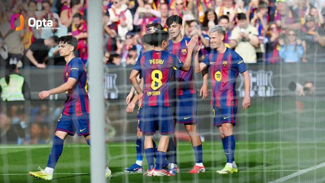 此役主场对阵塞维利亚,巴塞罗那凭借拉菲尼亚上演梅开二度和奥尔莫打入一球,在上半场战罢取得3-0领先。至此,巴萨本赛季西甲28场比赛已打入75球。