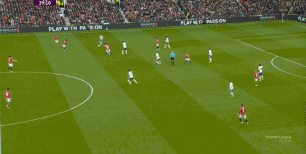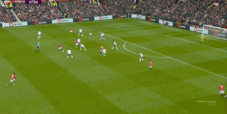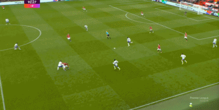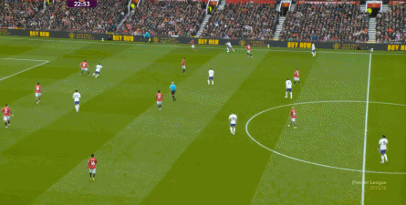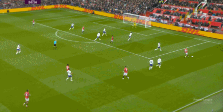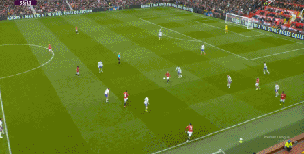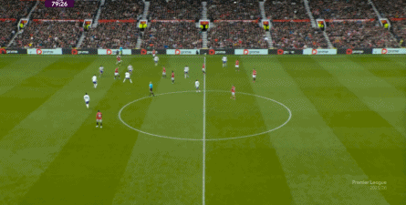 就在这次制造的前场界外球里,曼联转移到左路,从而制造了本场比赛的第一次进攻威胁,也就是上半场前半段只能打出来的传中: