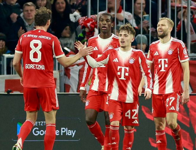 本场比赛拜仁排出了4231阵型。尼古拉-雅克松顶在最前面。卡尔、穆西亚拉和路易斯-迪亚斯的进攻组合联袂出击。基米希和格雷茨卡组成双后腰。莱默尔、于帕梅卡诺、金玟哉和比朔夫4后卫首发出战。诺伊尔担任首发门将。格纳布里、奥利塞和帕夫洛维奇坐在替补席待命。凯恩因伤缺阵。