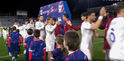 双方球员入场,比赛马上开始